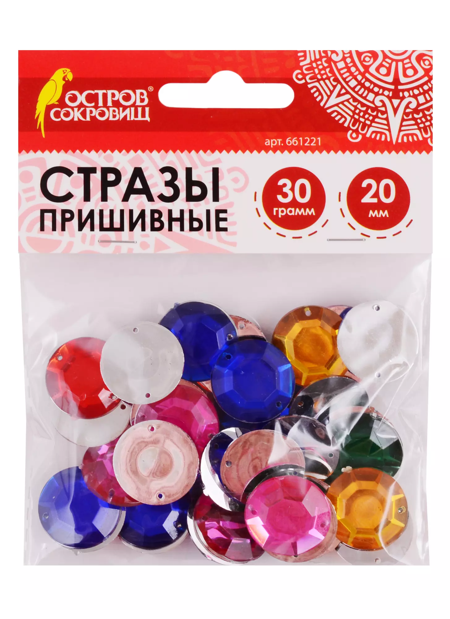 Стразы для творчества ОСТРОВ СОКРОВИЩ Круглые, цвета Ассорти, 20мм, 30г 61221