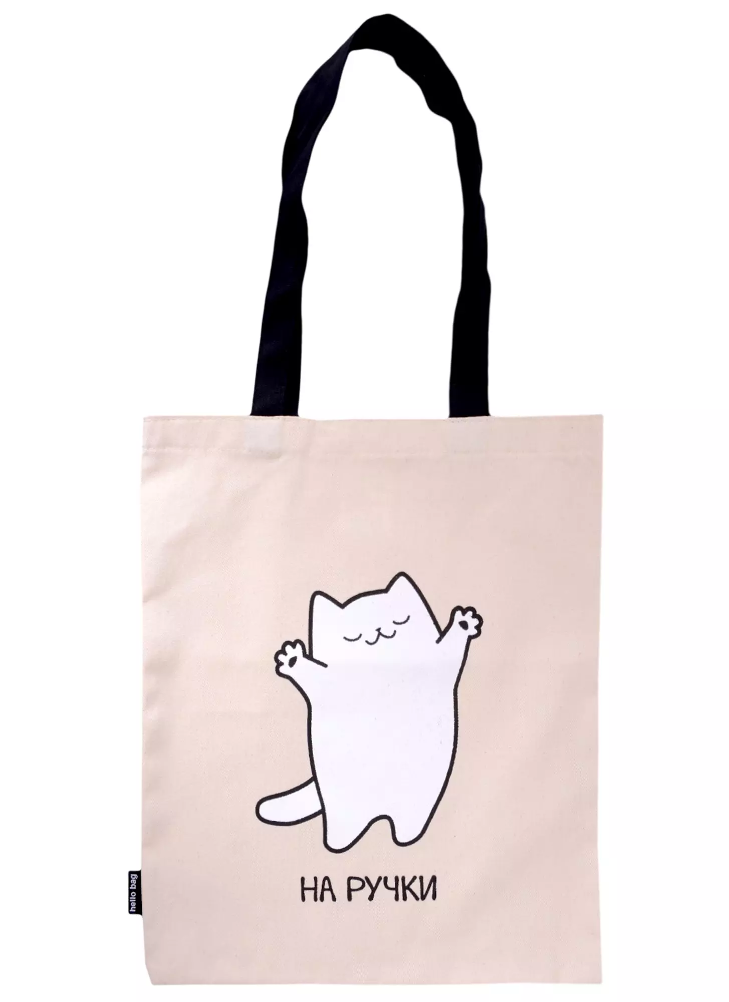 Сумка-шоппер Котик На ручки (бежевая) (текстиль) (40х32)