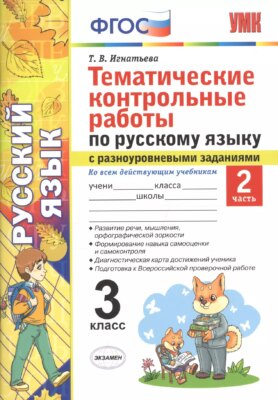 Данное пособие полностью соответствует федеральному государственному образовательному стандарту (второго поколения) для начальной школы. Пособие включает тематические контрольные работы по русскому языку для 3 класса. В контрольных работах предусмотрены задания двух уровней сложности: базового и повышенного. Задания повышенного уровня заключаются не только в расширении объёма контролируемого материала, но и предполагают необходимость проявления учащимися интеллектуальных способностей и высокого уровня речевого развития. В каждой теме присутствуют задания на работу с текстом, развивающие навыки осознанного чтения. Итоговые контрольные работы по темам и итоговые контрольные работы с текстом позволяют, начиная с 3 класса, готовиться к итоговой аттестации за курс начальной школы, а также к Всероссийской проверочной работе. Методической находкой являются карточки самооценки, в которых предусмотрена возможность оценки работы как учеником, так и учителем. Таким образом, ученик, самостоятельно оценив свою работу, затем видит, как оценивается его работа учителем. Такой подход помогает формированию регулятивных и личностных универсальных учебных действий. Пособие рекомендуется использовать при работе с любым учебником, рекомендованным Министерством образования и науки РФ и включённым в Федеральный перечень учебников.