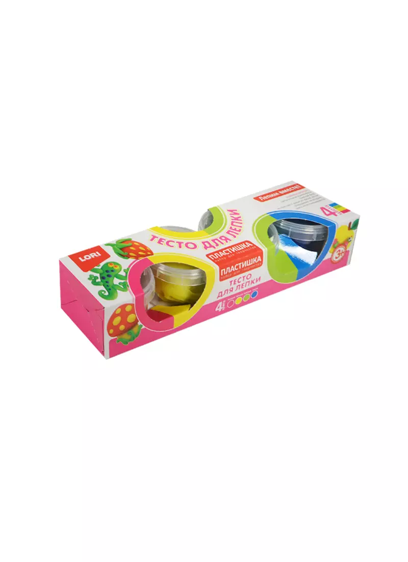 Лепка из соленого теста различных цветов — одно из самых увлекательных занятий для ребенка, являющееся более простым способом изображения по сравнению с рисованием. Свойство теста затвердевать позволяет использовать готовые фигурки в играх. Тесто является соленым, содержит только растительные компоненты, цвета легко смешиваются, затвердевает на воздухе, не пристает к рукам во время лепки. Мягкие компоненты для лепки: 4 цв по 80 г.