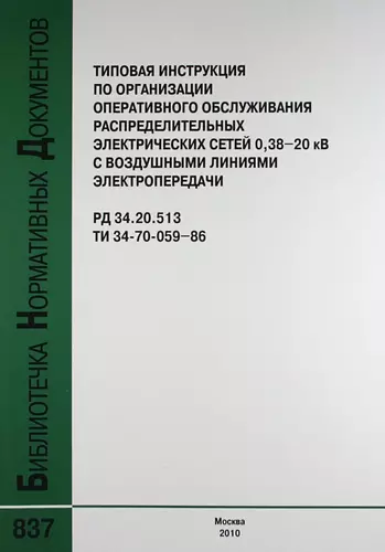 Типовая инструкция по организации оперативного обслуживания распределительных электрических сетей 038–20 кВ с воздушными линиями электр. РД 34.20.513