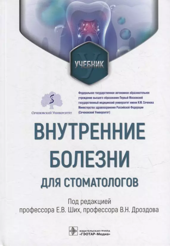 В учебнике представлены современные данные по этиологии, патогенезу, клиническим проявлениям, дифференциальной диагностике, лечению, профилактике и прогнозу наиболее распространенных и социально значимых заболеваний. Рассмотрены основные стоматологические проявления при заболеваниях внутренних органов, алгоритмы диагностики и оказания помощи при неотложных состояниях, которые могут возникнуть в том числе и при проведении стоматологических манипуляций. Материал изложен с учетом действующих рекомендаций профессиональных врачебных сообществ.Учебник предназначен для освоения дисциплины «Внутренние болезни» в образовательных учреждениях высшего профессионального образования, реализующих программы специалитета по стоматологии. Соответствует последнему поколению ФГОС и рабочей программе дисциплины. Издание адресовано не только обучающимся по программе специалитета «Стоматология», но и врачам-стоматологам, приступившим к профессиональной деятельности.