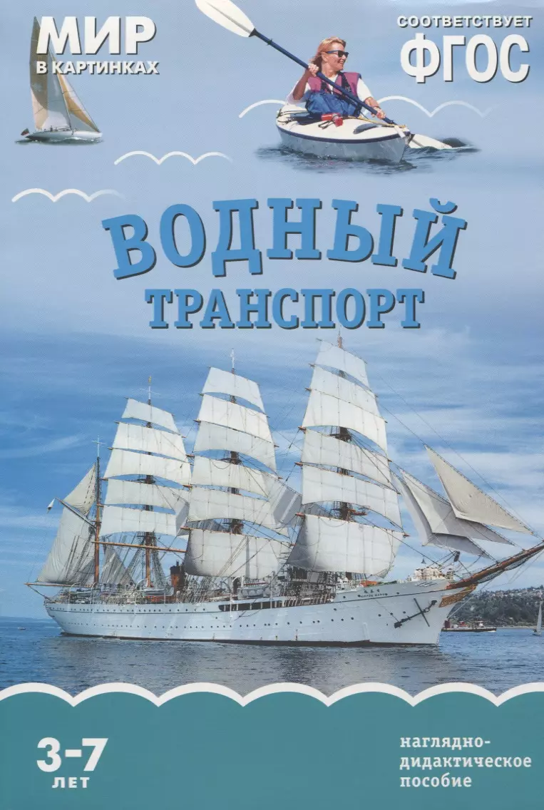 Наглядно-дидактическое пособие «Водный транспорт» серии «Мир в картинках», предназначенное для групповых и индивидуальных занятий с детьми 3–7 лет в детском саду и дома, познакомит детей с парусником, плотом, гондолой и другими видами водного транспорта.