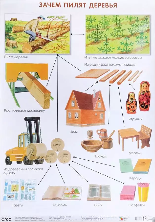 Плакат большого формата "Зачем пилят деревья" издан в рамках учебно-методического комплекта к парциальной программе С.Н. Николаевой "Юный эколог". Плакат расскажет детям о том, как много полезных предметов можно изготовить из дерева. Великолепные красочные иллюстрации обязательно заинтересуют ребят и помогут легко усвоить новые знания.
