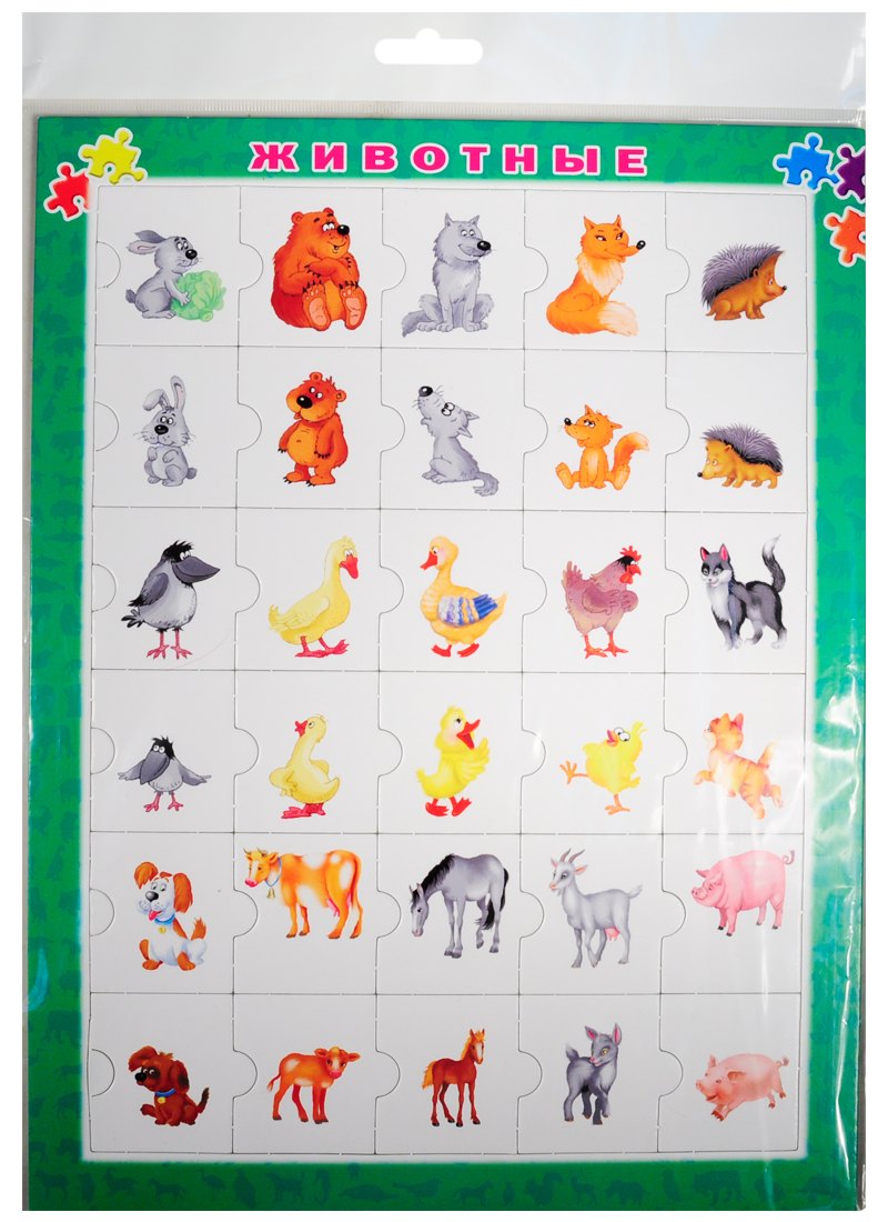 "Животные" — набор развивающих пазлов для знакомства с миром живой природы. Предложите малышу поиграть с пазлами, он быстро запомнит названия домашних и диких животных и их детёнышей.