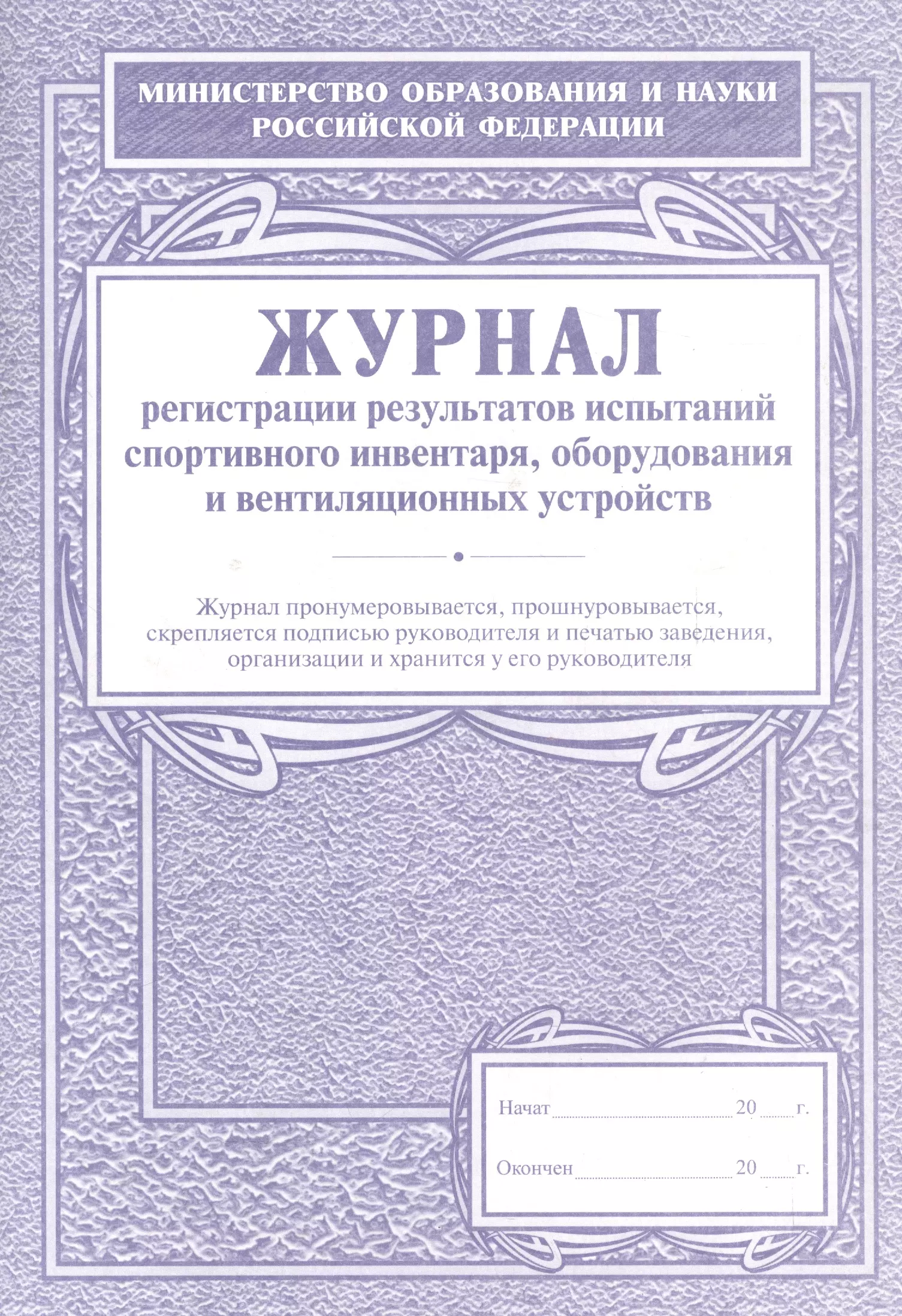 Главная » Мир литературы Журнал регистрации результатов испытаний спортивного инвентаря, оборудования и вентиляционных устройств Просмотров 5 Вашему вниманию предлагается журнал регистрации результатов испытаний спортивного инвентаря, оборудования и вентиляционных устройств