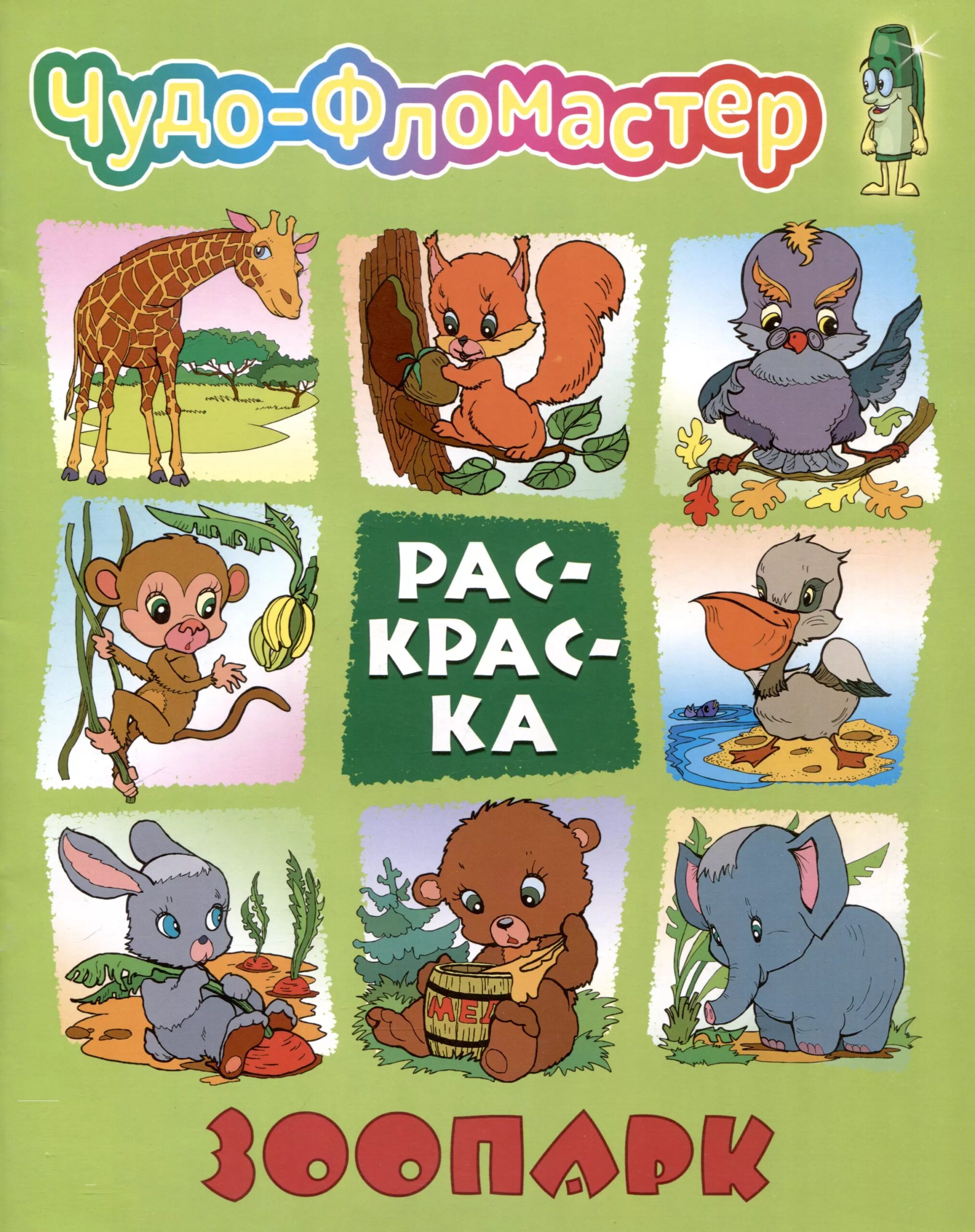 Развивающая раскраска для детей дошкольного возраста. Издание большого формата с крупными рисунками. Образцы рисунков для раскрашивания вынесены на обложку.