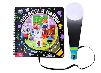 А. Лихачева Книжка с фонариком «Посвети и найди. День в школе»