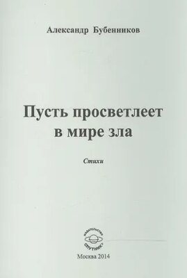 Главная » Книги Александр Николаевич Бубенников Пусть просветлеет в мире зла. Стихи Просмотров 4 В книгу ПУСТЬ ПРОСВЕТЛЕЕТ В МИРЕ ЗЛА вошли стихи Александра Бубенникова. . .