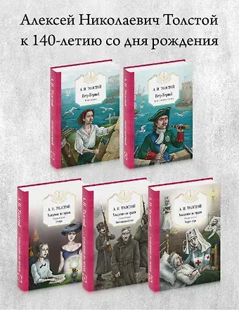 В комплект входят 5 книг: Петр Первый 1, Петр Первый 2, Хождение по мукам. Книга первая., Хождение по мукам. Книга вторая., Хождение по мукам. Книга третья..