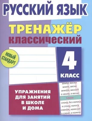 Классический тренажёр — это современное учебное пособие, предназначенное для комплексного усвоения учениками школьной программы по русскому языку. Благодаря многочисленным оригинальным упражнениям и заданиям он позволяет закреплять и совершенствовать полученные знания, вырабатывает автоматические навыки практического применения правил, развивает каллиграфию письма и правильность построения речи.