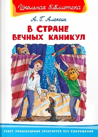 Повесть Анатолия Георгиевича Алексина «В Стране Вечных Каникул», выпущенная в серии «Школьная библиотека», рассказывает Петьке, у которого было одно заветное желание: чтобы каникулы никогда не кончались и можно было развлекаться целыми днями. И Дед Мороз исполнил желание Петьки! Теперь к услугам школьника были ежедневные представления, конкурсы, подарки и даже кино. Но так ли легко веселиться и есть пряники и пастилу каждый день? Это Петьке и предстоит выяснить.