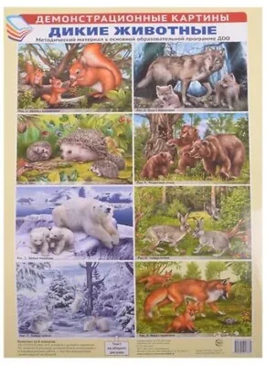Демонстрационные картины «Дикие животные». Методические материалы к основной образовательной программе ДОО. Комплект из 8 плакатов. Текст на обороте рисунка.