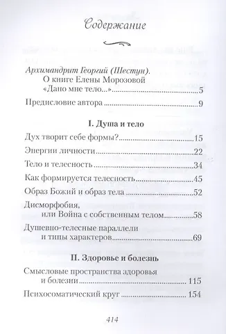 Книга Морозовой Елены Анатольевны «Дано мне тело…» посвящена проблеме взаимосвязи телесного и духовного бытия личности. В работе рассматриваются различные грани этой большой, объемной темы: духовные и психологические аспекты телесности, душевно-телесные параллели и типы характеров, смысловые аспекты здоровья и болезни, психосоматические расстройства и причины их возникновения, преодоление болезни, духовные и психологические стратегии их преодоления и многое, многое другое. Книгу отмечает широта охвата проблем, которые рассматриваются в междисциплинарном ключе с привлечением большого количества материала из психологии, святоотеческой и медицинской литературы. Работа будет полезна всем людям, интересующимся проблемами взаимоотношения телесного и духовного в человеке, сохранения здоровья и преодоления различных недугов.