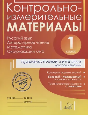 Предлагаем вашему вниманию учебное пособие с контрольно-измерительными материалами для 1 класса. Оно поможет вам оценить уровень знаний первоклассников в середине и в конце учебного года.