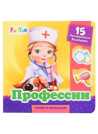 На каждом развороте ребёнок найдёт несколько вынимающихся предметов — разных по форме вкладышей. Каждому из них соответствует определённая рамка.