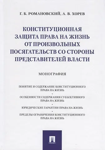 Георгий Борисович Романовский Конституционная защита права на жизнь от произвольных посягательств со стороны представителей власти. Монография