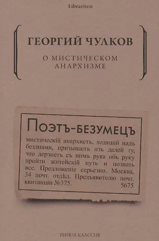 «О мистическом анархизме» — это брошюра Георгия Чулкова со вступительной статьей Вяч. Иванова, изданная «Факелами» в 1906 году. С этого безуспешного и экзотического манифеста открылась партия буквально из двух человек — авторов, попытавшихся политизировать поэзию символистов. Мы включили в сборник и статью Дмитрия Философова «Мистический анархизм» — одну из полных рецензий на издание Чулкова-Иванова. Философов, конечно, ругает за использование «соборности», рассказывая о времени, в котором подобные «идеи витали в воздухе».