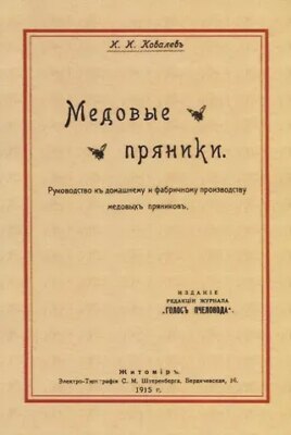 Репринт с издания. Житомир, 1915. Технология приготовления, 84 рецепта. Руководство к домашнему и фабричному производству медовых пряников.