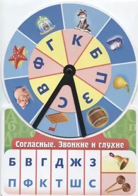 Обучающая игра «Согласные. Звонкие и глухие» научит ребенка различать парные глухие и звонкие согласные звуки. Вращая внутренний круг и пластиковый элемент, малыш научится соотносить картинку с нужной буквой.