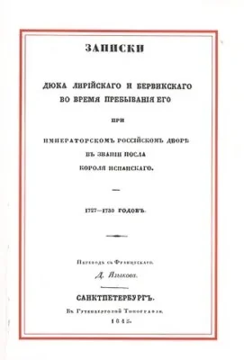 Записки Дюка Лирийского и Бервикского во время пребывания его при императорском российском дворе в звании посла короля испанского. 1727-1730 годов.