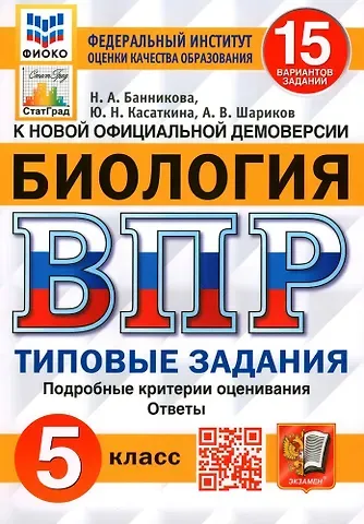 Юлия Николаевна Касаткина, Александр Викторович Шариков, Наталия Анатольевна Банникова Биология. Всероссийская проверочная работа. 5 класс. Типовые задания. 15 вариантов заданий. Подробные критерии оценивания. Ответы