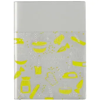 Книга для записи кул.рецептов А6+ 96л лин. «СЕРЕБРЯНАЯ» ПВХ-обл., карман, мягк.переплёт, тиснение фольгой, шелкография, два ляссе, инд.уп.