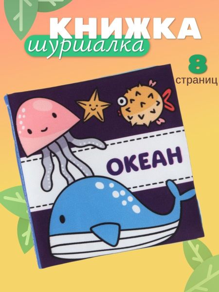 Книжка — шуршалка для малышей «Океан», 11×11.5 см, от 3 мес.. Текстильная книжка-шуршалка «Океан» станет идеальным выбором для малышей от 3 месяцев. Компактный размер и яркие страницы помогут познакомить ребенка с обитателями океана, развивая внимание и слуховое восприятие. <b> Особенности</b> <ul> <li> Книжка выполнена из мягкого текстиля с шуршащими элементами для тактильного и звукового развлечения.</li> <li> 8 страниц с простыми и понятными изображениями для самых маленьких.</li> <li> Мягкий переплет обеспечивает безопасность и удобство использования малышом.</li> <li> Подходит для игр дома или в дороге благодаря компактному размеру.</li> </ul> <b> Играем с пользой</b> Эта книжка не только развлекает, но и обучает ребенка первым словам, развивая речь и зрительное восприятие. Шуршащие элементы стимулируют слуховое внимание, а яркие картинки привлекают взгляд малыша. Родители могут использовать книжку для совместных занятий, добавляя эмоции и звуки к каждому изображению.