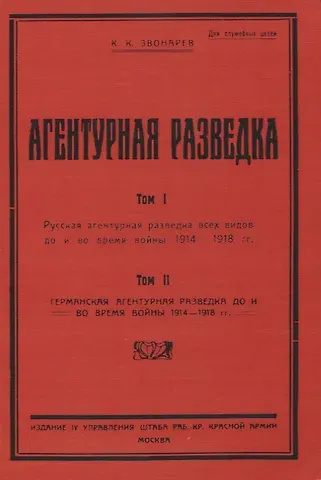 Константин Кириллович Звонарев Агентурная разведка. Том I. Русская агентурная разведка всех видов до и во время войны 1914-1918 гг. Том II. Германская агентурная разведка до и во время войны 1914-1918 гг.