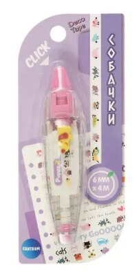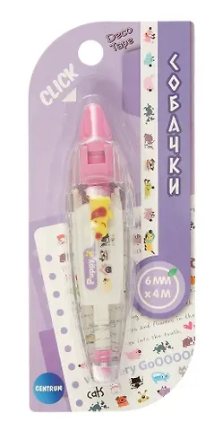 Корректор — лента Centrum «Собачки». Декоративная лента предназначена не только для корректировки, но и для творчества. Преобразить страницы дневника, выделить необходимую часть текста, украсить лекции и конспекты. Корректирующая лента схожа со стандартной. Разница заключается в самой ленте. Вместо привычной белой полосы, Вы увидите привлекательные изображения в зависимости от выбранного дизайна. Работа корректора осуществляется с помощью выдвижного механизма. Нажмите на кнопку, расположенную на верхней части, далее надовите на корпус и проведите по нужному месту не отрывая руки. Пластиковый роллер, расположенный внутри контейнера, обеспечивает плавную и не прерывистую подачу ленты. Данное средство не требует высыхания, поэтому после корректировки исправленная область сразу же готова к работе. Корректирующая лента устойчива к перепадам температур. Упаковка — блистер с подвесом. Ширина ленты – 6 мм. Длина ленты – 4 м.