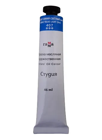 Штучная масляная краска серии «Студия» цвета синий светлый кобальт не уступает тонкотёртым масляным краскам по степени перетира, пастозности и светостойкости. Состав красок экологически безопасен благодаря имитациям кадмиево-кобальтовой группы пигментов. Продукт идеально подходит для начинающих художников и студентов художественных училищ. Объём тубы — 46 мл.