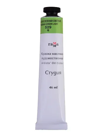 Штучная масляная краска серии «Студия» русского зелёного светлого цвета не уступает тонкотёртым масляным краскам по степени перетира, пастозности и светостойкости. Состав красок экологически безопасен благодаря имитациям кадмиево-кобальтовой группы пигментов. Продукт идеально подходит для начинающих художников и студентов художественных училищ. Объём тубы — 46 мл.