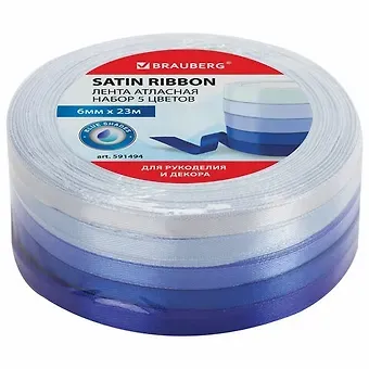 Лента атласная ширина 6 мм, СИНИЙ СПЕКТР набор 5 цветов по 23 м, BRAUBERG, 591494
