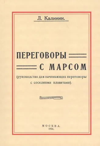 Репринт с издания. Москва. Рогожско-Симоновский Совет, 1924. Псевдонаучный рассказ. Рассмотрены принципы использования математических принципов для контакта с инопланетянами
