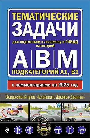 М.В. Юрьева Тематические задачи для подготовки к экзамену в ГИБДД категорий А, В, М, подкатегорий А1, В1 с комментария на 2025 год