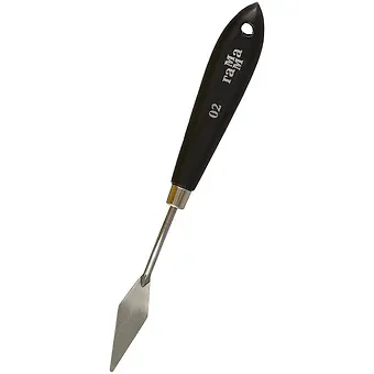 Паяный мастихин из нержавеющей стали с удобной плоской ручкой из натурального бука. Сварное соединение ручки и лезвия дает больший угол наклона мастихина к холсту, снижая вероятность случайного касания и смазывания краски.