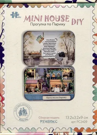 Главная » Книги MiniHouse DIY. Румбокс в шкатулке «Прогулка по Парижу» (13,2х3,2х9см) Просмотров 16 Вашему вниманию предлагается румбокс в шкатулке «Прогулка по Парижу». Размер собранного изделия: 13,2х3,2х9 см В комплекте: -детали для сборки -русскоязычная инструкция -модуль подсветки -линейка и пинцет Батарейки CR2032 в комплект не входят!