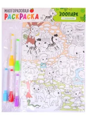 Многоразовая раскраска-плакат имеет глянцевое покрытие. С него без труда можно стереть маркер. Поэтому раскрашивать можно не один раз.