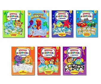 Набор длинных раскрасок с заданиями (комплект из 7 книг)