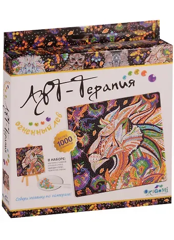 Коллекция алмазных узоров «Арт-Терапия» погружает в мир фэнтези. Выкладывайте алмазами Белого Льва, Золотую Сову, Ночного волка, Огненного Льва. Создавайте панораму из 4 картин. Оригинальное украшение интерьера. Алмазные картины сравнительно просты в изготовлении. Необходимо снять защитный слой с клеевой основы и с помощью карандаша-стилуса приклеить стразы по номеру и цвету. Готовую картинку можно поставить на мольберт, который входит в набор. Блестящий результат восхищает всех!