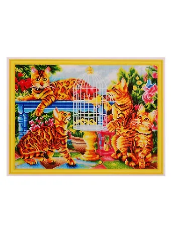 Набор для творчества, Рыжий Кот, Алмазная мозаика Бенгальские коты в саду (класс.) 40х50см, с подр.,с полн. заполн.38 цв. AC4024