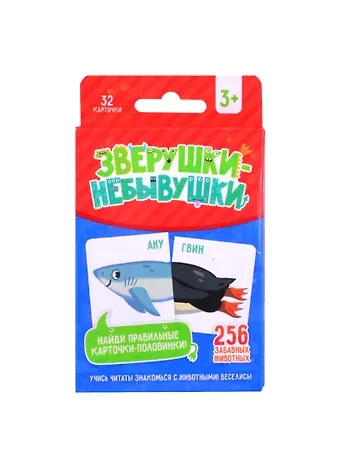 Весёлые карточки с половинками животных, которые превращаются в забавных и неведомых науке существ. Выбирайте буквы, произносите слог, переворачивайте карточки и знакомьтесь с кресаткой, крокомаром и другими невероятными зверями!