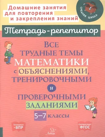 Учебное пособие содержит основной программный материал по математике для 5-7 классов общеобразовательной школы. Простые объяснения трудных тем даны как подсказки школьнику в выполнении самых разнообразных заданий. Разные уровни сложности предложенных заданий позволят отработать со школьниками весь учебный материал, доводя полезные навыки и алгоритмы до автоматизма. Проверочные задания помогут оценить усвоение школьником трудных тем.