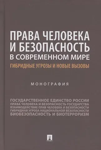 В монографии подробно анализируется поиск баланса таких ценностей, как права человека и безопасность государства в условиях нарастания гибридных угроз. Выделено понятие юридической безопасности, рассмотрена теория заговора как гибридная угроза национальной безопасности, представлены особенности противодействия биотерроризму. Особое внимание уделяется анализу противодействия террористическим угрозам, а также проблемам соблюдения основных прав человека в процессе данной деятельности.