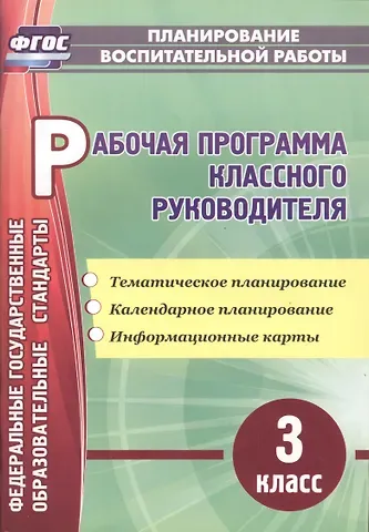 В пособии представлена рабочая программа классного руководителя 3 класса по созданию воспитательной системы, включающая паспорт, пояснительную записку, различные сведения об обучающихся и их родителях, психолого-педагогическую характеристику классного коллектива, планирование (план-сетку) с обозначенными основными векторами деятельности и соответствующими им формами работы, педагогическое сопровождение актива и взаимодействие с родителями, изучение состояния эффективности воспитательных мероприятий, циклограмму классного руководителя. Предложены материалы практико-ориентированного характера, которые помогут педагогу грамотно построить и организовать воспитательное пространство в классе и школе в соответствии с требованиями ФГОС НОО. Пособие предполагает возможность дополнения и редактирования. Предназначено классным руководителям, заместителям директора, организаторам воспитательной работы в образовательных организациях.