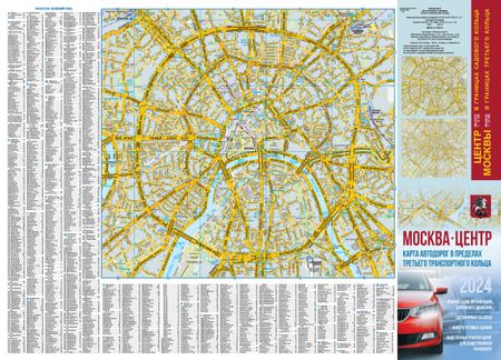 Двусторонняя карта автомобильных дорог центра Москвы.
