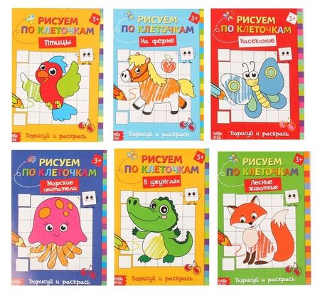 None Набор раскрасок по клеточкам «Животные» (комплект из 6 книг)