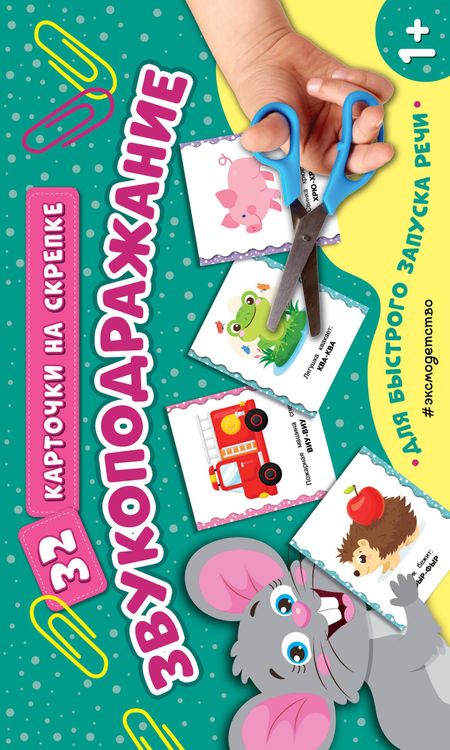 Это незаменимое пособие для запуска речи у малышей от 1 года. При помощи ножниц книга превращается в комплект из 32 двусторонних обучающих карточек. Яркие привлекательные иллюстрации вызовут неподдельный интерес малыша и пробудят в нём желание озвучить персонажей. Задача взрослого — показать ребёнку, как это делается, и помочь ему сделать первые шаги в освоении устной речи. Книга поможет развить артикуляционный аппарат ребёнка, его внимание, память, логическое мышление и эстетическое восприятие.