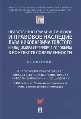 Нравственно-гуманистическое и правовое наследие Льва Николаевича Толстого и Владимира Сергеевича Соловьева в контексте современности. Монография