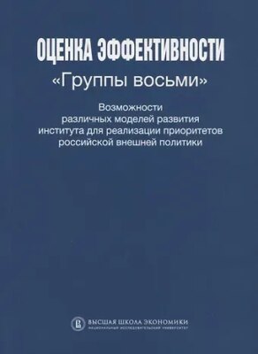 .народных институтов, проведение анализа и оценки эффективности “Группы восьми” и возможностей различных моделей реформирования института для реализации приоритетов российской внешней политики в условиях кризиса системы глобального управления», выполненных в рамках программы фундаментальных исследований ВШЭ в 2009 г. Представлены системный анализ динамики эффективности деятельности «Группы восьми» и роли России в «восьмерке», прогноз направлений развития и оценка возможностей различных моделей реформирования института для реализации приоритетов российской внешней политики в соответствии с Концепцией внешней политики Российской Федерации. Работа выполнена с использованием функциональной модели анализа и оценки эффективности международных институтов.